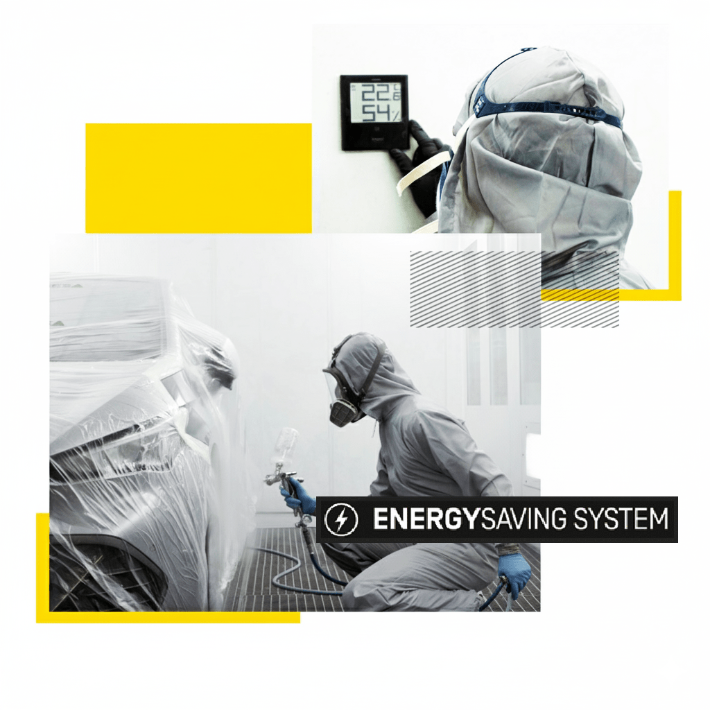 ENERGY SAVING SYSTEM es un proceso de alta eficiencia compuesto por productos de última tecnología, y cuyo principal objetivo es reducir drásticamente el consumo energético en cabina sin renunciar a la calidad. El camino más corto hacia un taller más rentable, productivo y sostenible energéticamente.